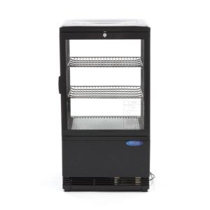 Ψυχώμενη επιτραπέζια βιτρίνα 58 λίτρων - μαύρη. Εξοπλισμένο με 3 πλέγματα με επικάλυψη, δυνατότητα ρύθμισης της θερμοκρασίας με τον ψηφιακό ρυθμιστή θερμοκρασίας Dixell. Εκτός αυτού, αυτή η βιτρίνα είναι επίσης εφοδιασμένη με κλειδαριά.