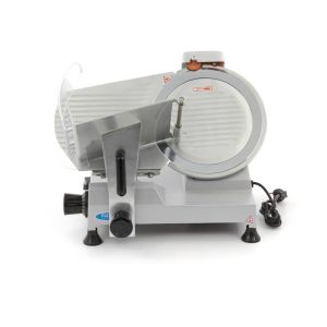 Αυτός ο επαγγελματικός κόφτης Maxima Meat Slicer διαθέτει ανθεκτική κατασκευή από αλουμίνιο και σκληρυμένο μαχαίρι από ανοξείδωτο χάλυβα διαμέτρου 300 χιλιοστών. Λόγω της κλίσης της τοποθέτησης, αυτή η συσκευή είναι πολύ φιλική προς το χρήστη. Παρακάτω μπορείτε να βρείτε όλα τα χαρακτηριστικά του μηχανήματος κοπής Maxima Meat MS 300: