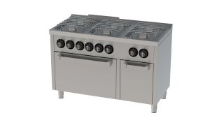 Περιγραφή: Κουζίνα με 6 εστίες inox σχάρες και φούρνο ηλεκτρικό basic 600